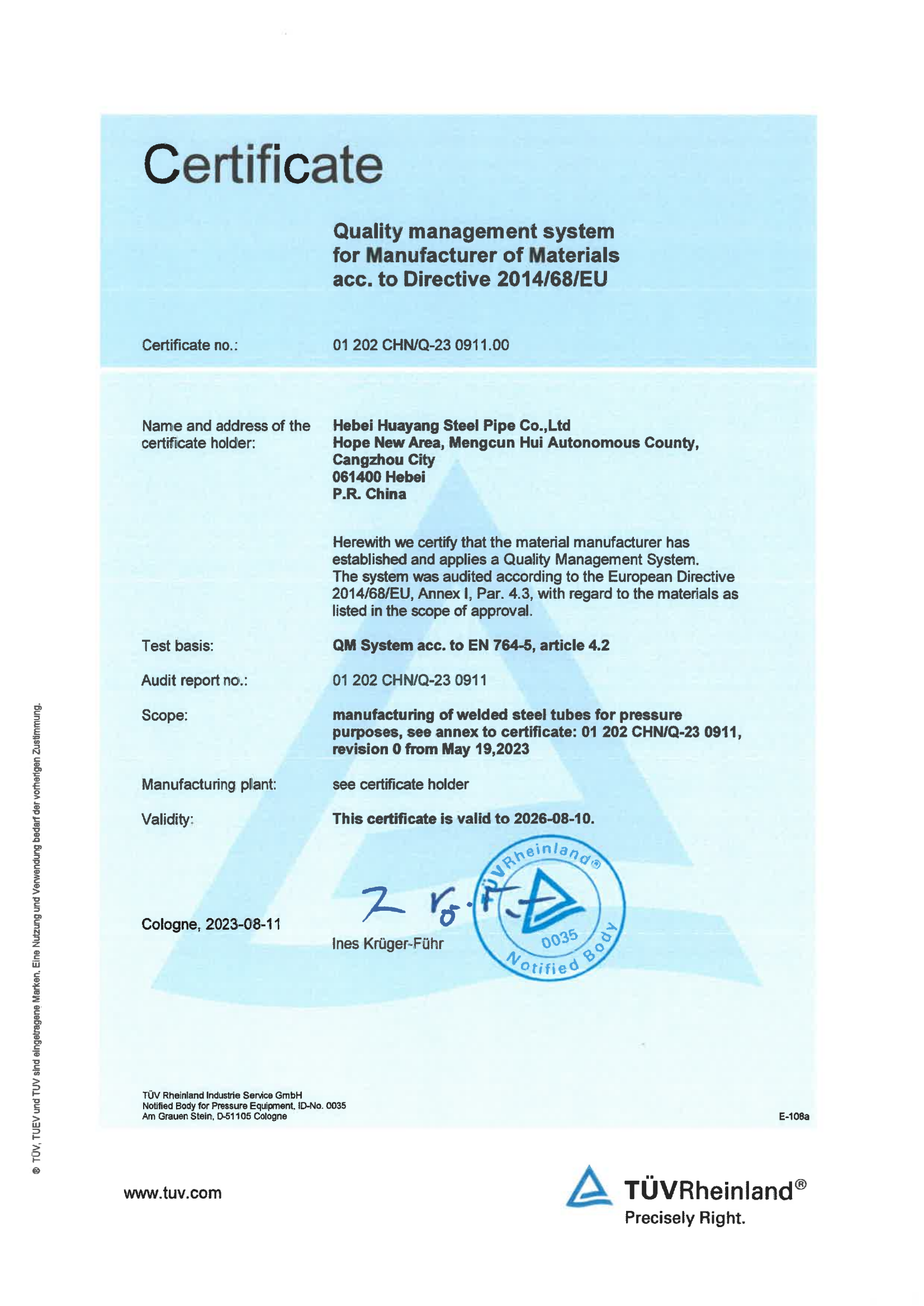 公司現有17條新型的自動化鋼管生產線,包括Φ73-660.4高頻直縫焊鋼管生產線14條、Φ406.4-Φ1422.4直縫雙面埋弧焊鋼管生產線3條,并配備有一條防腐生產線,可進行3PE、2PE、FBE、2PP、3PP防腐處理,同時還可提供鋼管深加工服務。公司擁有先進的理化實驗室,可承擔鋼管的各項物理及化學檢測與試驗。公司先后取得了ISO9001質量管理體系認證、ISO14001環境管理體系認證、ISO45001職業健康安全管理體系認證、特種設備制造許可證、API5L和API2B認證證書、歐盟CE認證、俄羅斯GOST認證、中海油入網證、安全生產標準化二級企業等標準質量體系認證。